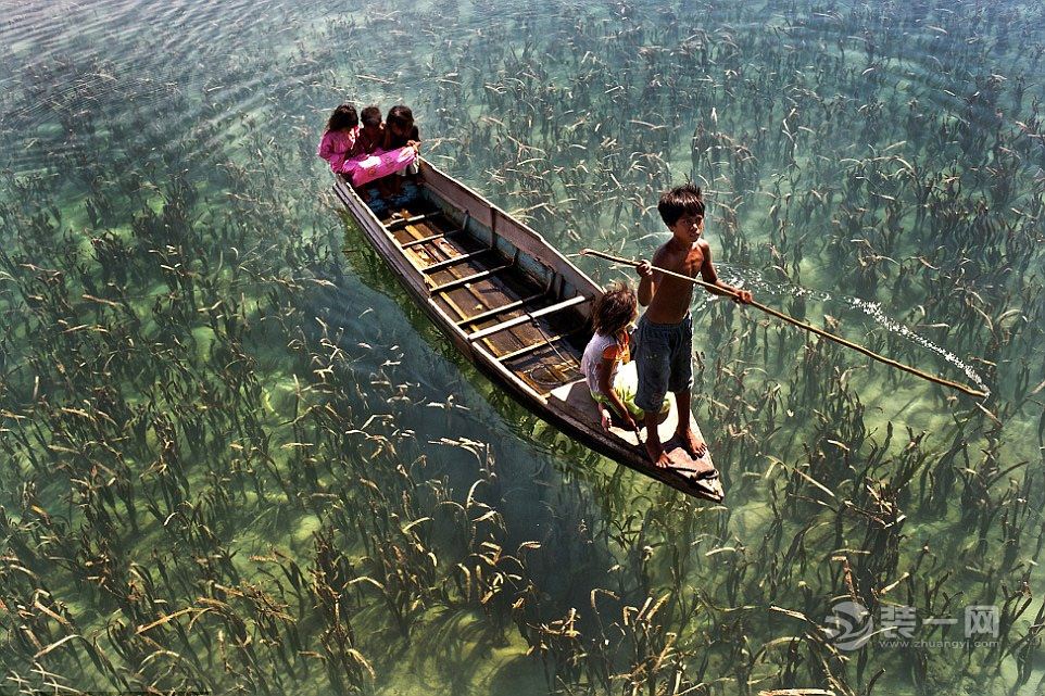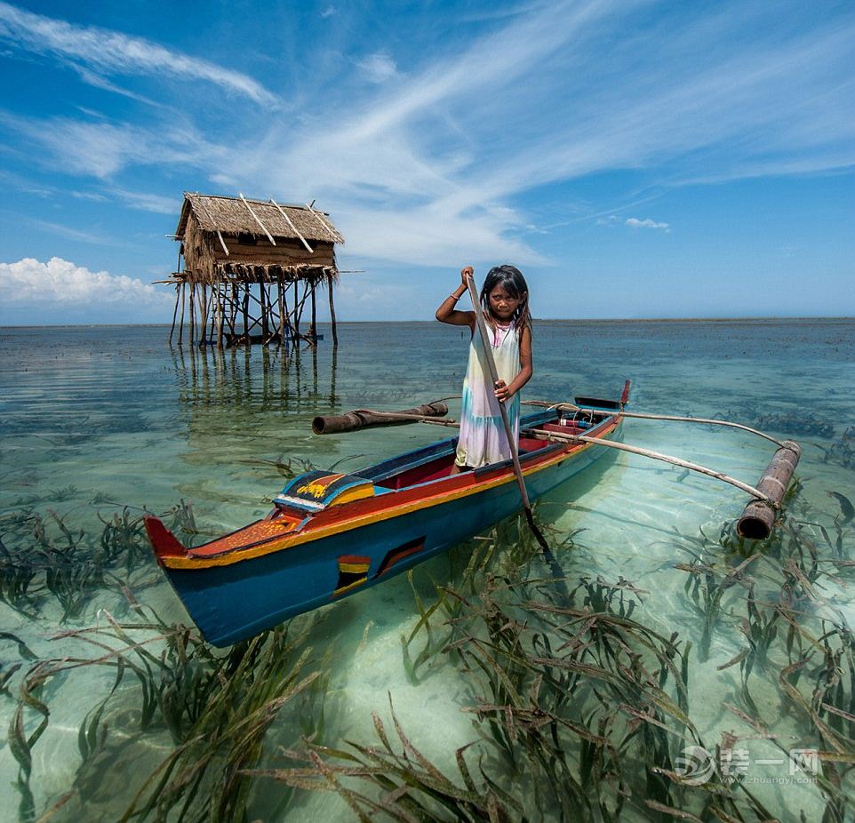巴瑶人每天清晨,就早早起床,开始一天的“航海”和捕鱼,孩子们则在小船周围的海里潜水游玩。