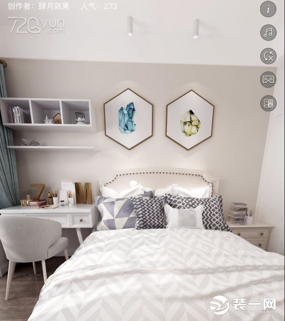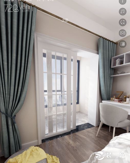 次卧色调与主卧一致,光线也是充足明亮,让人感觉舒适自由。