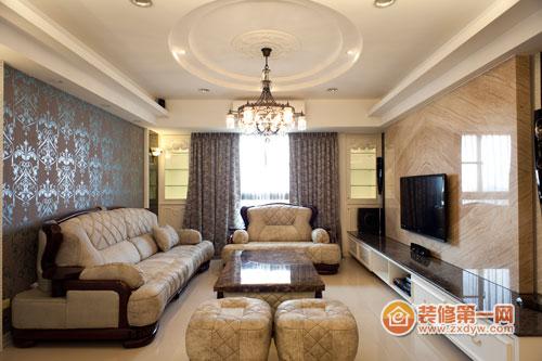 设计者为渴望极致生活的屋主打造唯美空间,在客厅运用了丰沛的质材展现原始肌理,如电视面墙使用帝诺石,电视机柜与茶几则以大理石铺述,让整体氛围大器非凡,而在收纳柜面及隐藏式的门片上,採用雕花饰板造型来增添空间的丰富层次。主卧空间围塑一贯的新古典主题,女孩房则以甜美的公主风营造柔美的氛围。