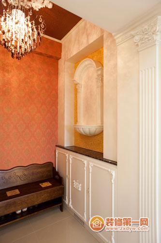 进入玄关就能感受设计者的细腻,欧式造型的端景彷彿艺术臻品,搭配著璀璨的水晶吊灯,场域瀰漫艺文气韵。