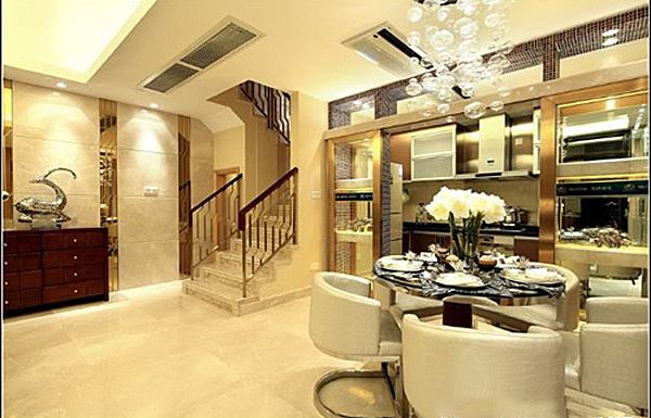 踏入这座别墅样板房,米黄色调如同温柔的阳光洒遍每个角落。客厅里,米黄色的大理石地板搭配同色系的柔软沙发,精致的雕花茶几在米黄色氛围下更显古朴典雅。墙上挂着的艺术画作,边框也采用米黄色搭配,和谐统一。