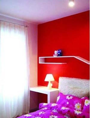 卧室:适时放置一些搁架,也是小户型的一大手段。