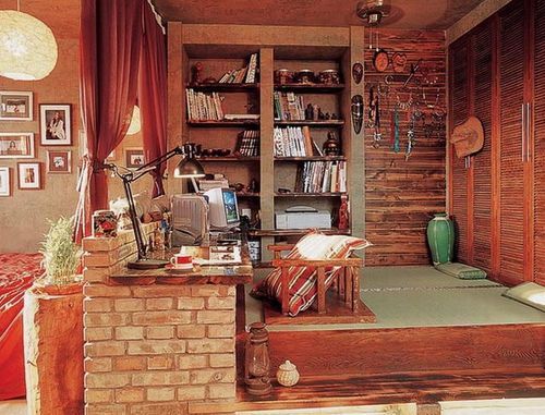 古朴的书架早已是主人多年的好友,所有的办公设备都巧妙融入周围,可以让这里的主人在这里舒服地看几本书,喝上一杯热气腾腾的浓茶,惬意而自在。