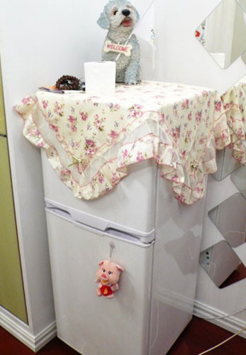 旁边就是冰箱部分了。家里因为是全白色的,所以把之前西门子的大冰箱给了老妈,我妈说2个冰箱才够放东西。所以正好。我就买了饿小的,我和老公两个人够了。对了上面的那款冰箱罩是在荔园家居买的,很喜欢。