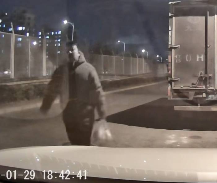 因当天要去外地出差,李先生没有过多在意,也没有拍照留存证据。出差期间处理完事务后,他闲来无事便调出行车记录仪查看。没想到,这一看竟让他找到了污迹的真正来源。视频清楚显示,1月29日18时42分,一名中年男子途经其车旁时,故意朝挡风玻璃吐了一口痰。