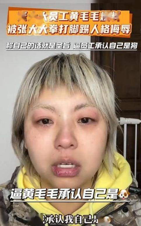 这还不算完,黄毛毛说他又叫人把自己摁住,强迫她弯下腰来鞠躬,并且喊"狗屎"。