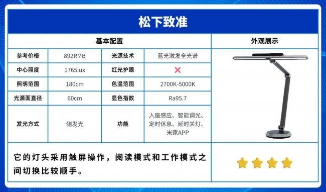 上榜理由:灯头触屏操作方便,无论是阅读模式还是工作模式,都可以轻松切换。