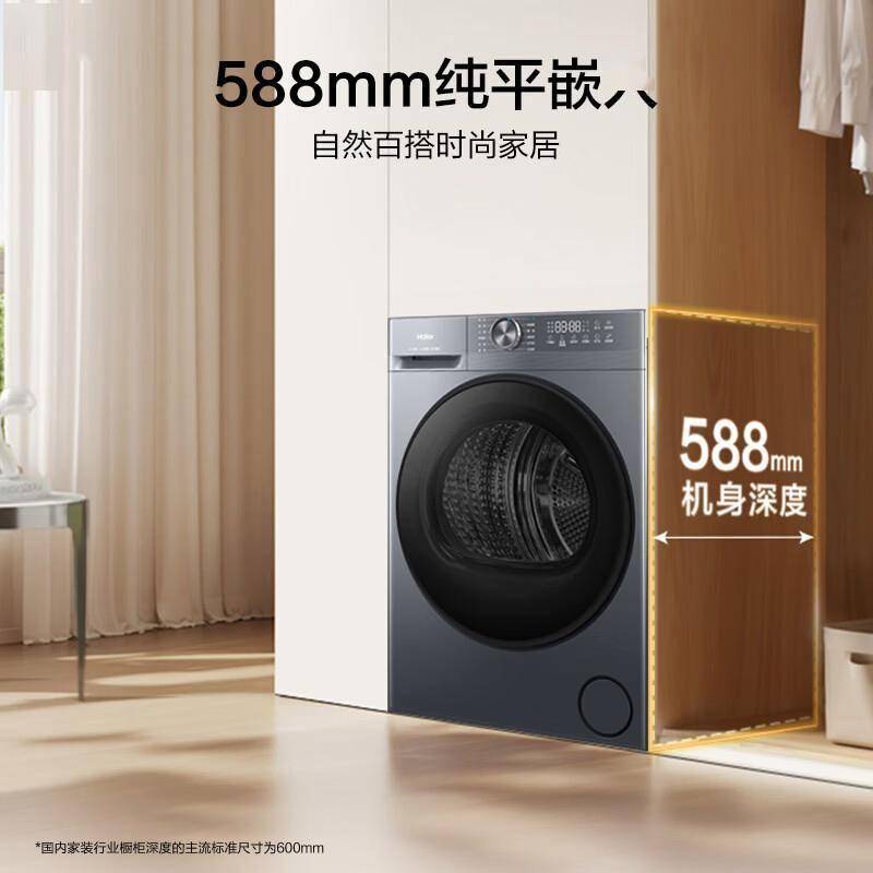 现代厨房和阳台空间珍贵,传统家电往往显得突兀。海尔小红花烘干机采用纯平全嵌设计,正面无凸起把手,可与橱柜完美齐平,视觉上浑然一体,让家居空间更显整洁大气。