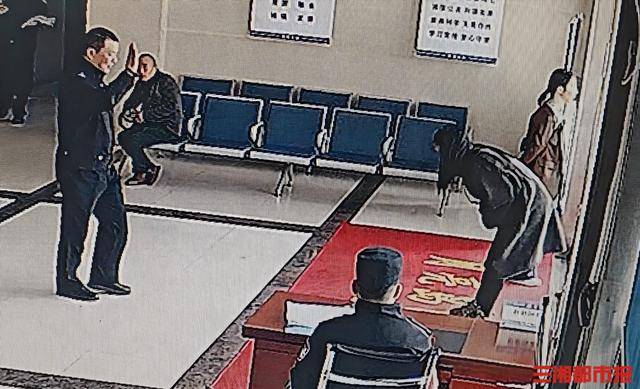 杨女士深深一鞠躬,感谢民警帮她找回珍贵的“回忆”。视频截图
